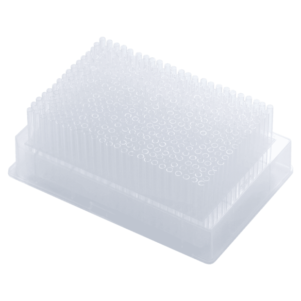 Los insertos de vidrio aguantan compuestos agresivos y disolventes fuertes sin alterar las reacciones. Con 384 pocillos, puedes sacar muchos datos con menos volumen.