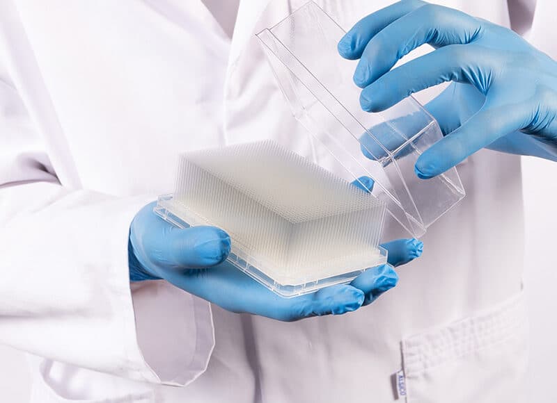 Haz miles de pruebas en una sola placa. Ahorras reactivos, ganas velocidad, y gracias al vidrio no pierdes calidad ni aunque uses solo 50 µL por pocillo.